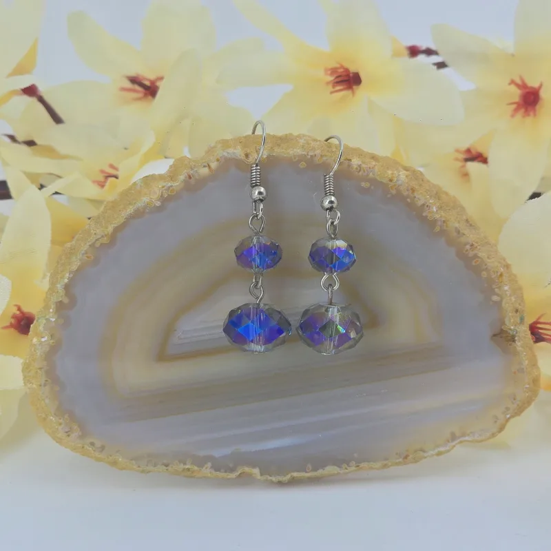 Aretes de 4 cm de largo de cristal rondel de 6×8 mm y 9×12 mm, montado en hilo y arillo africano.