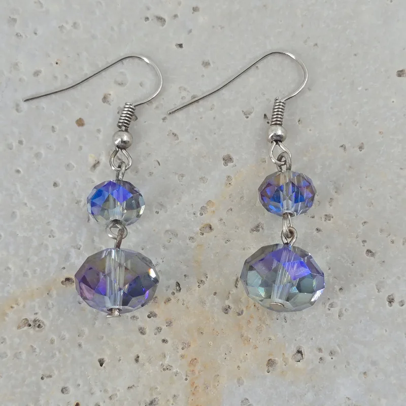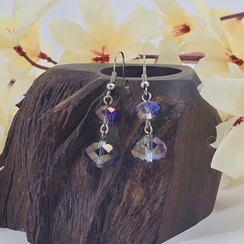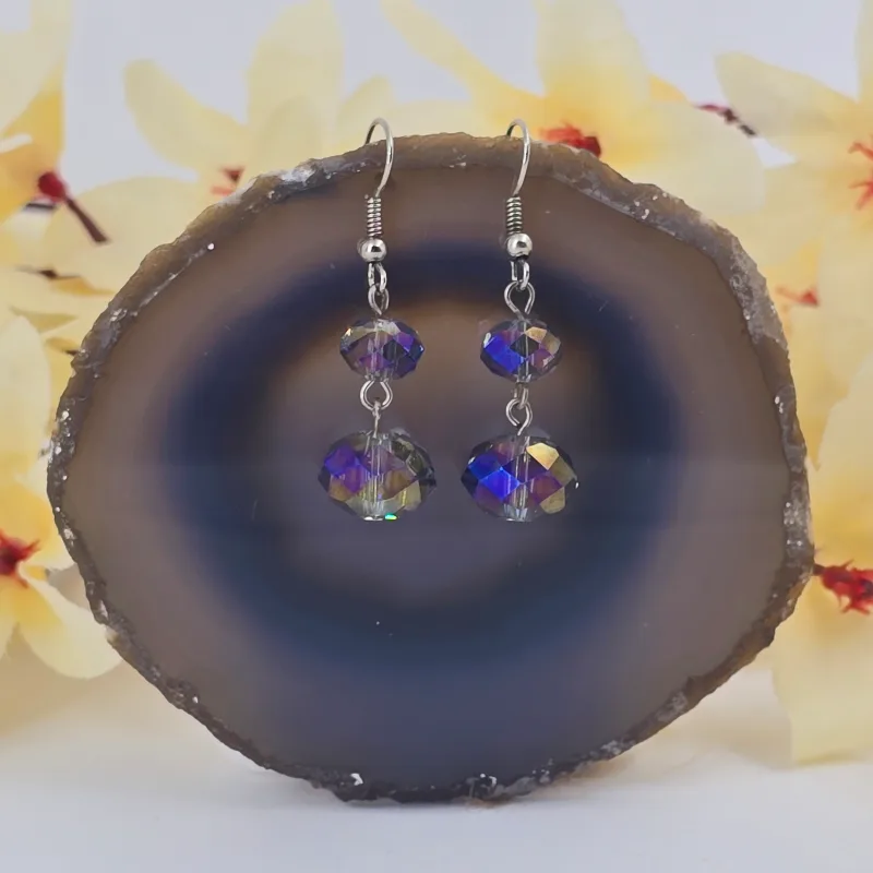 Aretes de 4 cm de largo de cristal rondel de 6x8 mm y 9x12 mm, montado en hilo fantasía y arillo africano.