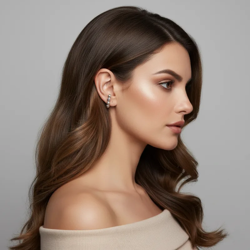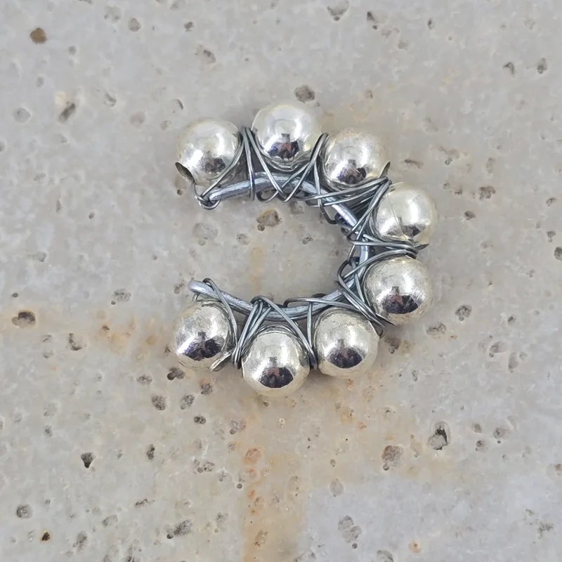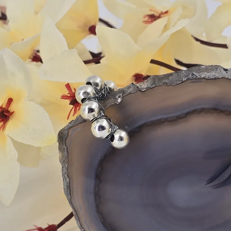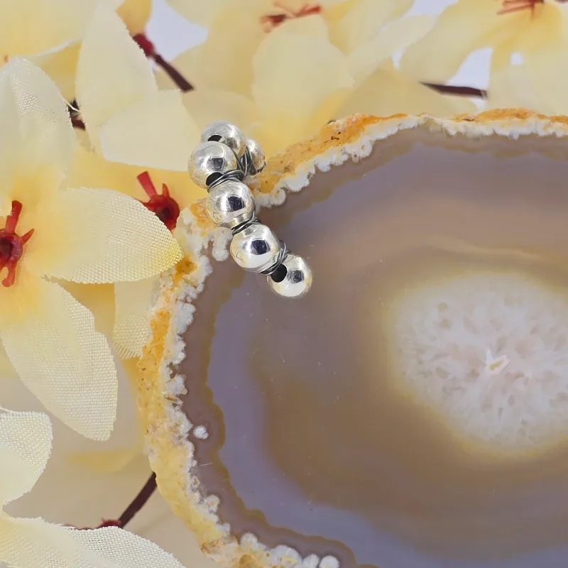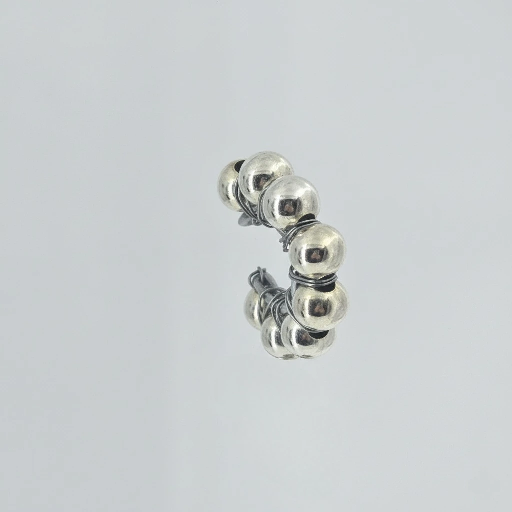 Earcuff con cuentas metálicas de de 2 cm de alto por 2.2 cm de ancho en alambre con cuentas metálicas de 6mm.