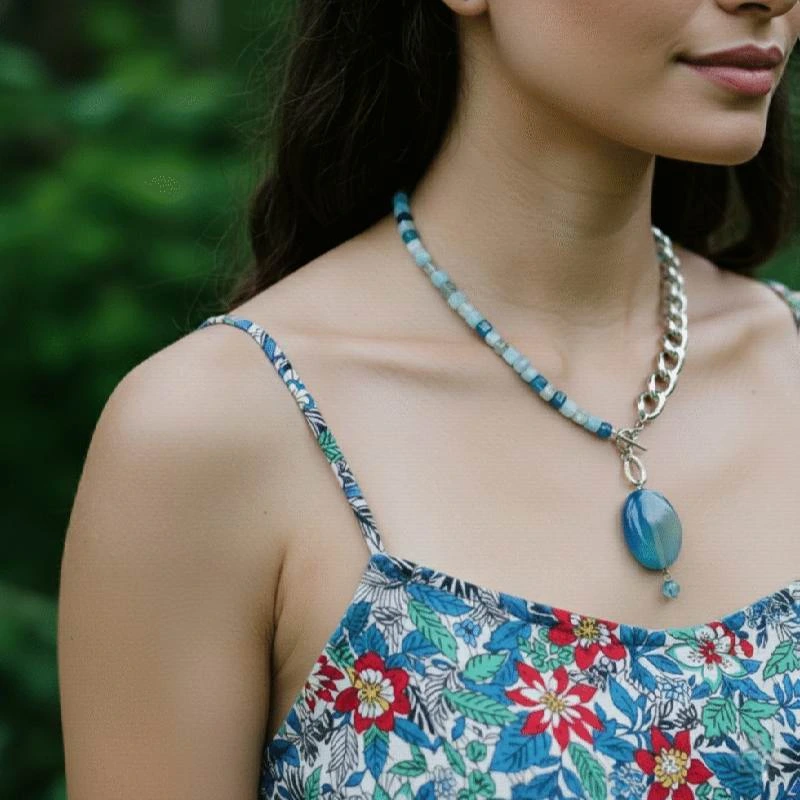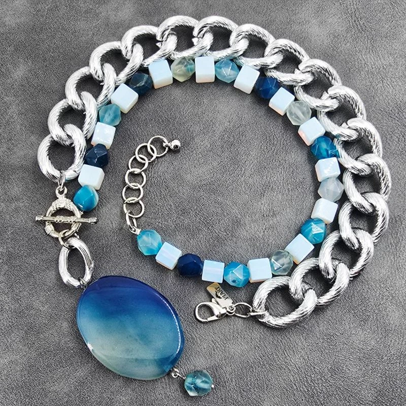 | Mineral/Acento | Ágata Azul, Piedra Luna |