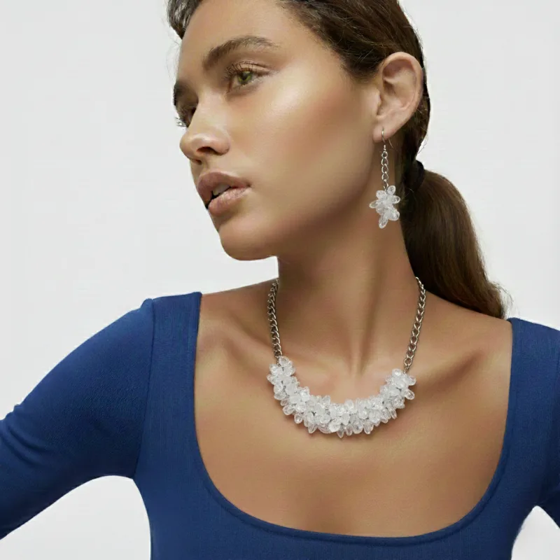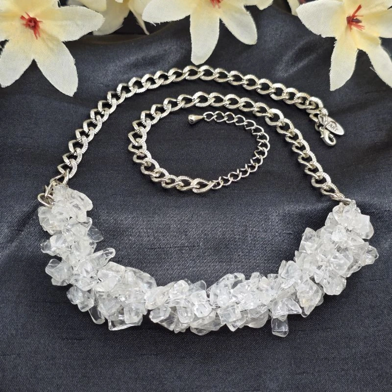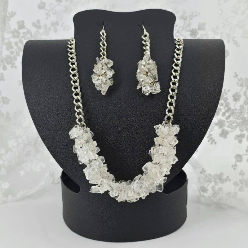 Set de Collar y Aretes de cuarzo chip de diversos tamaños con cadena de acero inoxidable
