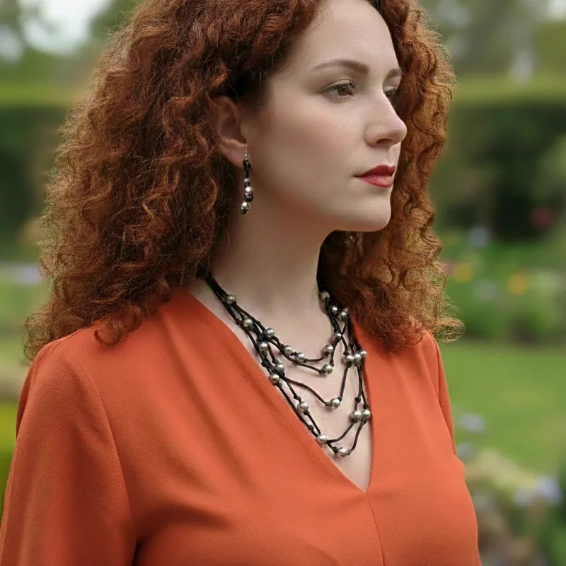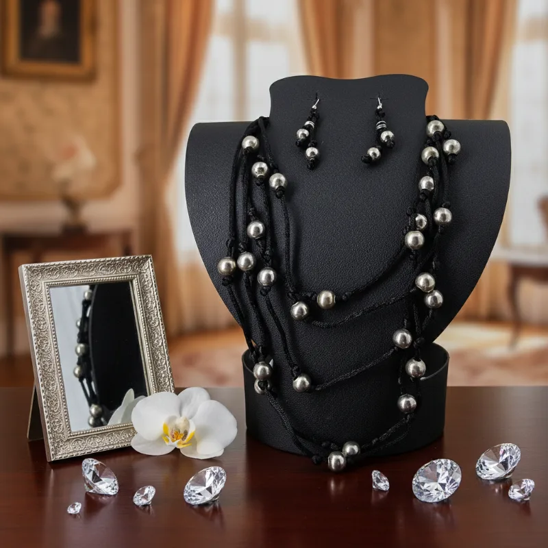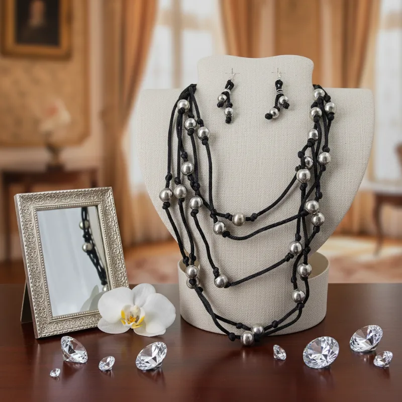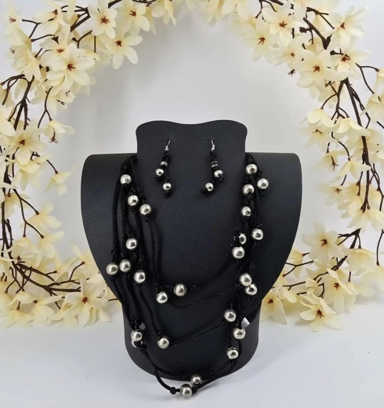 Set de Collar y Aretes de esferas metálicas montado en cola de rata